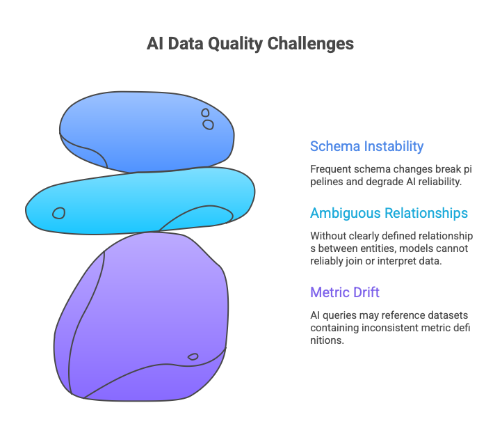 AI models depend on structured, well-defined context. They cannot infer business meaning the way a human analyst can.