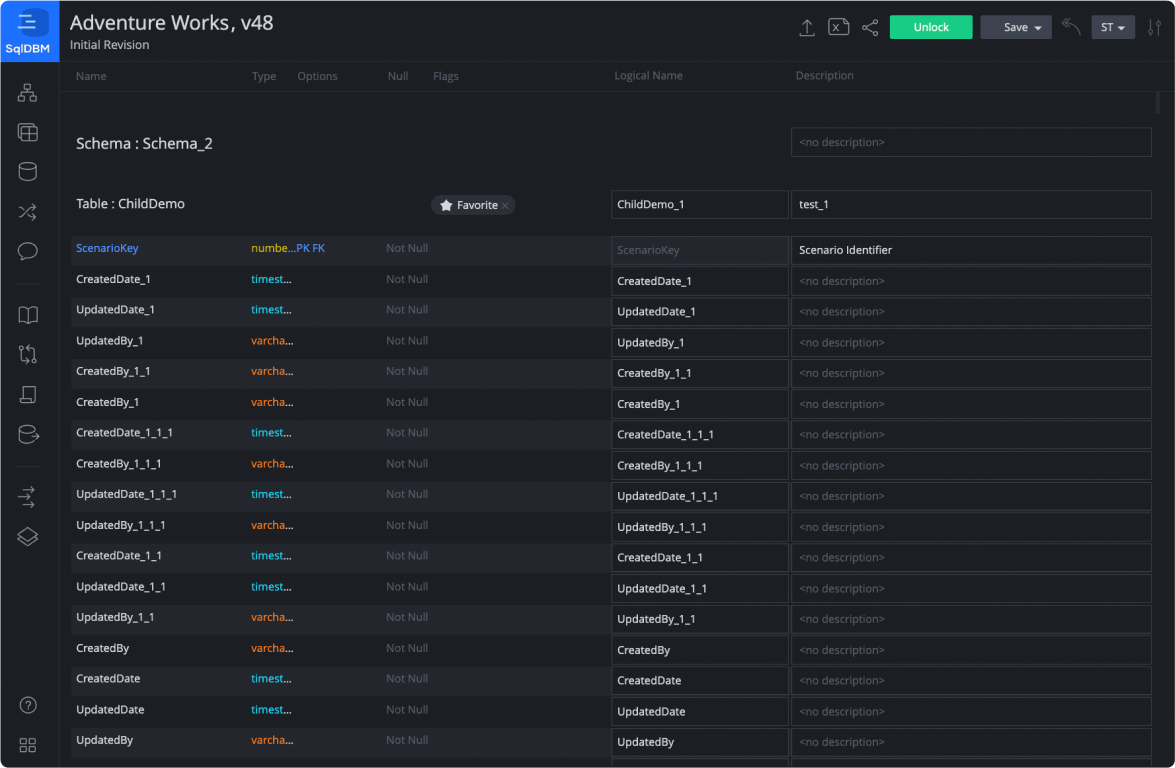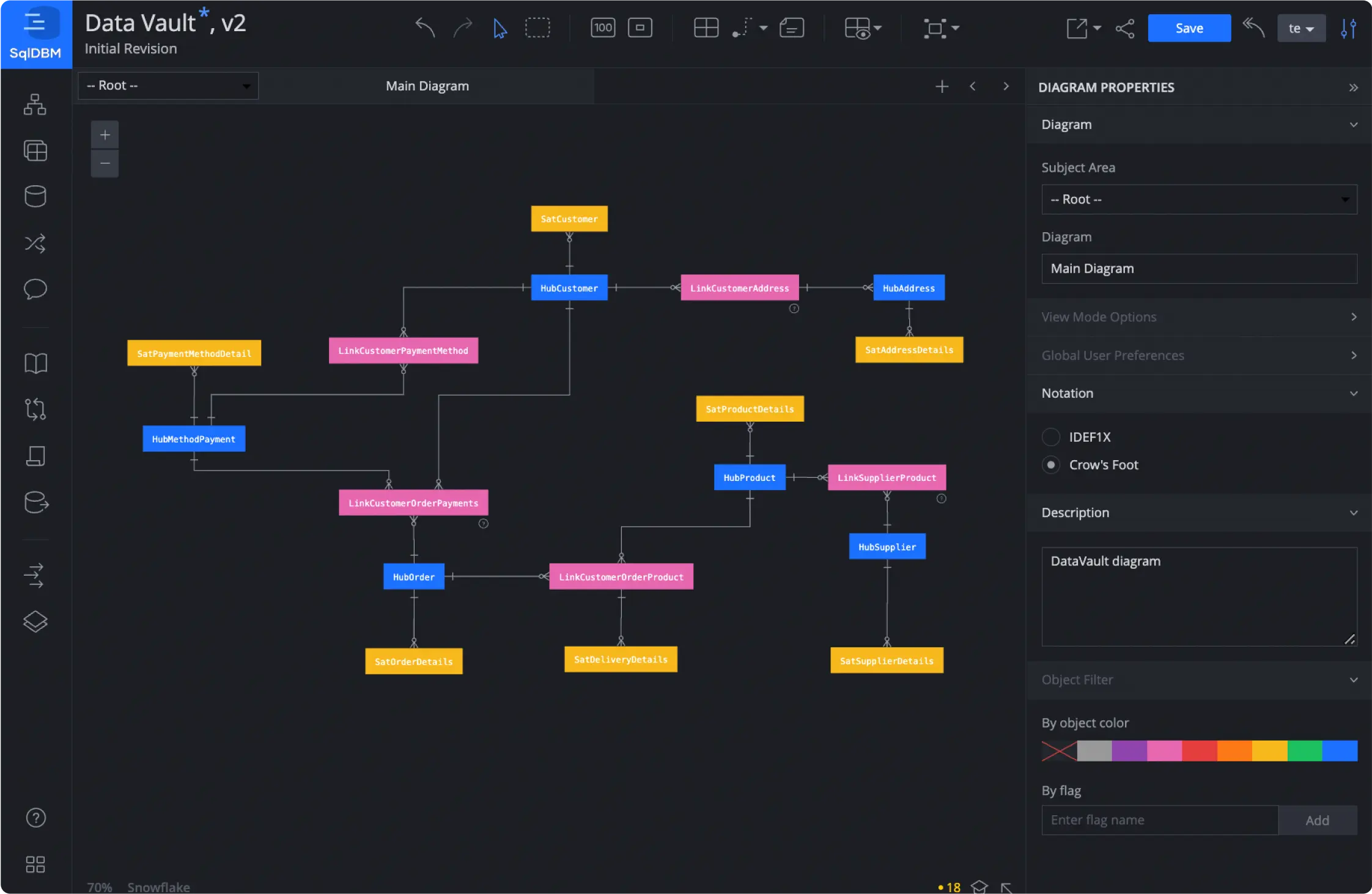 SqlDBM’s templates, naming conventions, and logical to physical translations are built to ensure consistency and time savings in repeatable operations such as the creation of hubs, links, satellites, and bridge tables.