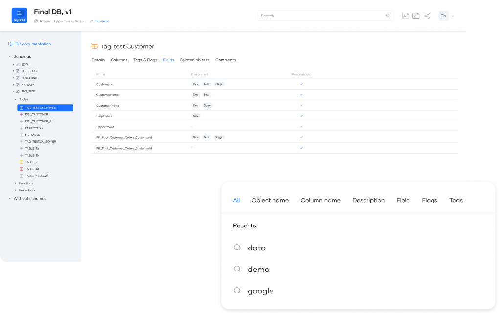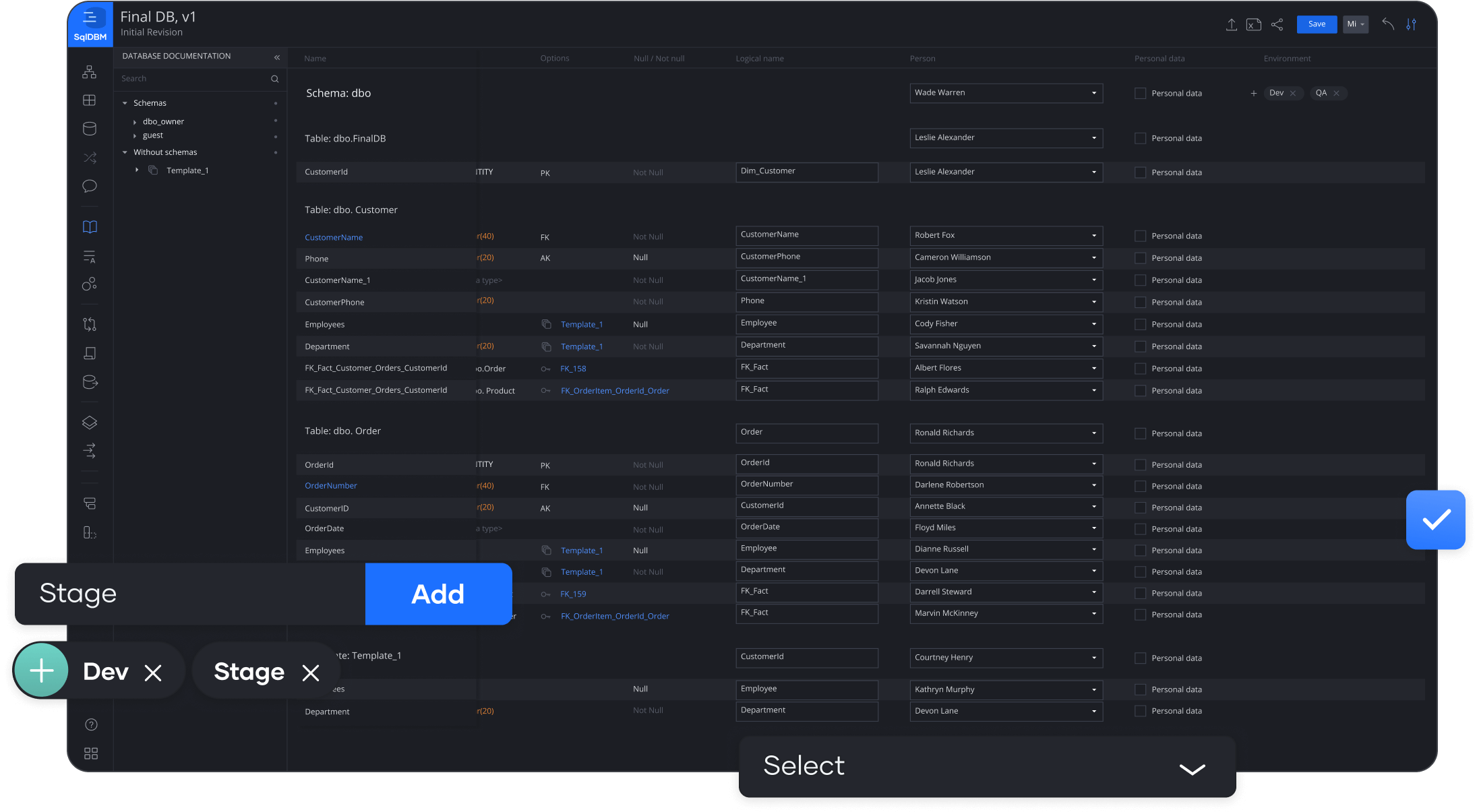 The governance suite will let users create their own columns (and column types) and add them to the database documentation. Define elements like source/target mappings, table owners, and medallion status by extending documentation with data cataloging fields. By designating fields as dbt-enabled, users can also maintain dbt source and model properties without writing yaml by hand.