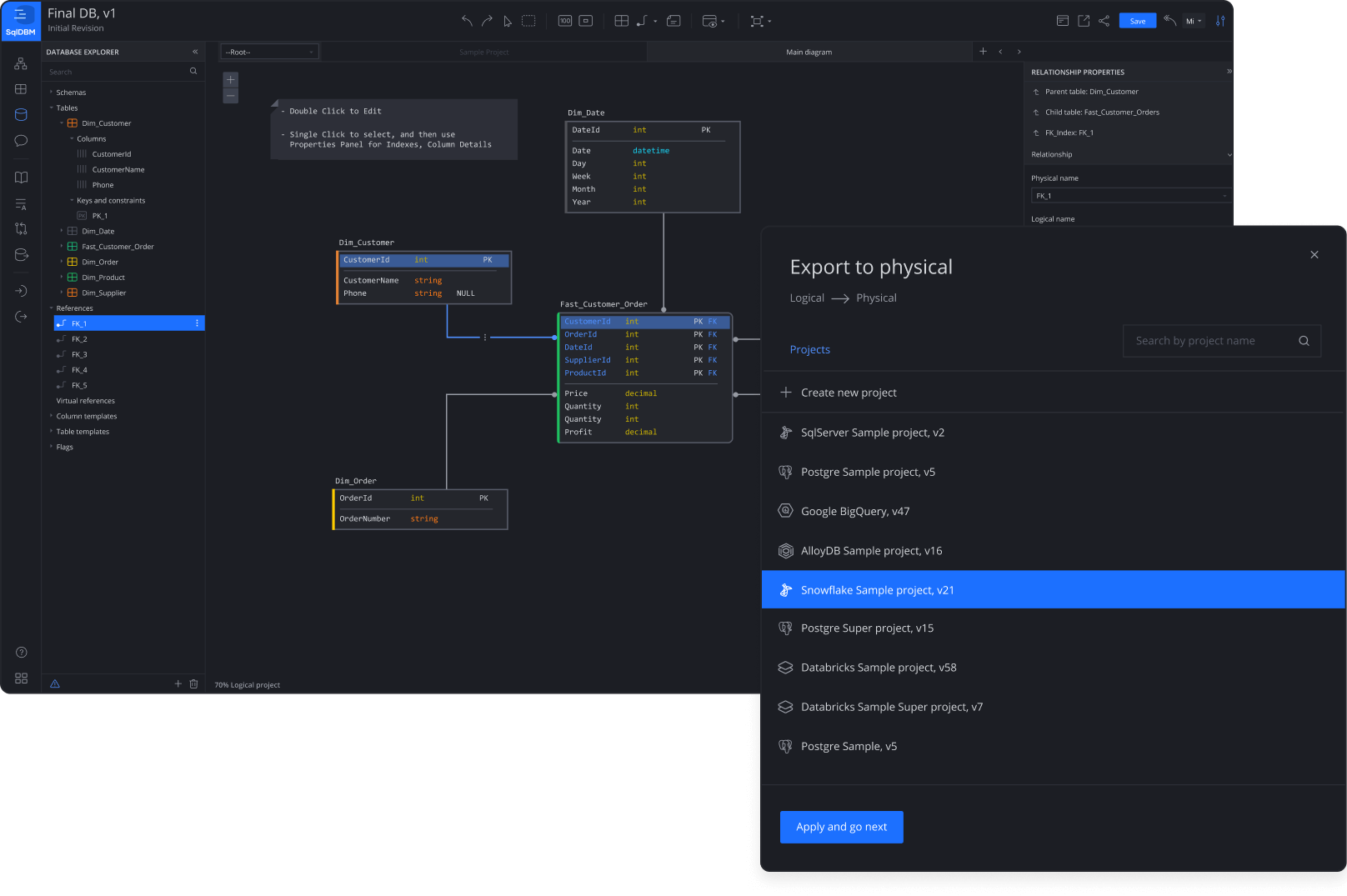 Maintain the foundational business model for your organization and instantiate it based on database-specific settings for supported SqlDBM project types. You maintain full control over the data type mapping, normalization, and naming convention settings for each target database.