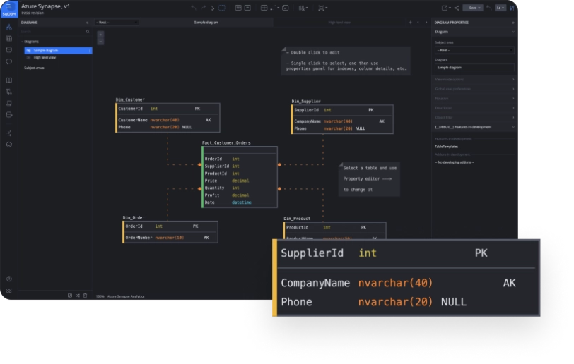 SqlDBM supports Azure Synapse objects and their native properties