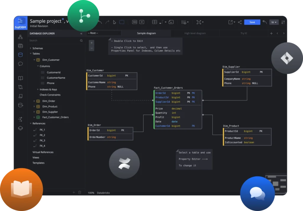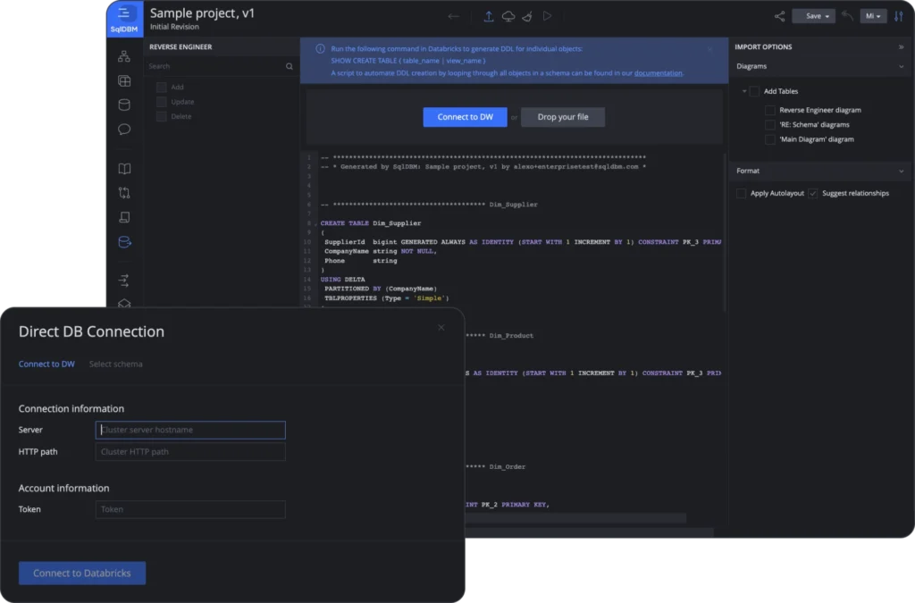 Obtain lakehouse DDL and convert it to interactive diagrams in seconds with SqlDBM direct connect.